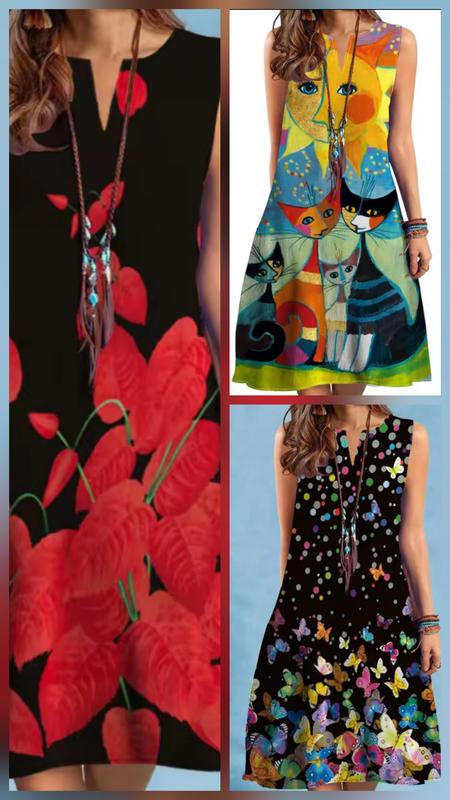 Платье яркое. Ниже колен. Размеры маки пог 59 см., длина 95 бабочки пог 56 см., длина 97 коты пог 56 см Ткань полиэстер