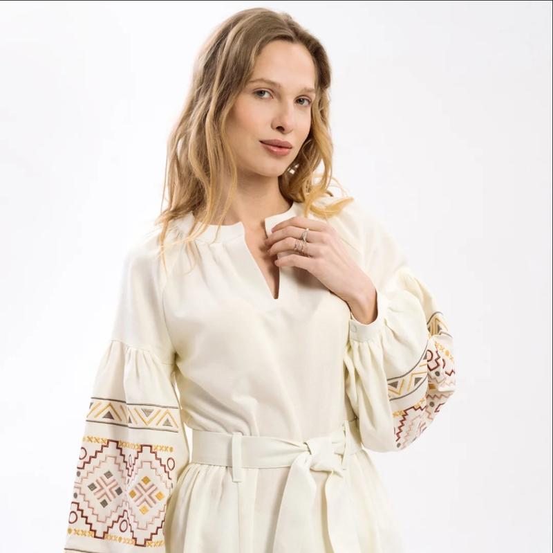 Женское вышитое платье Грация (молочное) выполненное на натуральной ткани Вид вышивки – гладь тканина- бавовна размер Xs S L XL 2XL