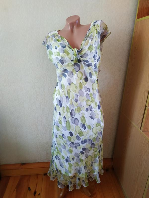 Нежное шелковое платье на ацетатной подкладке, крой по косой. Длина от плеча 116 см, Пог 46-55 см, Пот 40-48 см, Поб 50-60 см, плечи 40 см, рукав 9 см