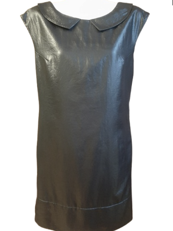 Шикарное легкое платье с интересным вырезом на спине. Крой прямой по бокам потайные карманы, интересный воротничок, со стороны застежка молния, Верхний материал имитация кожи (100% легкий полиэстер), подкладка 100% хлопок. Размер указан на бирке 4, подойдет на евр. 8/10. Длина 87 см., ширина по плечам 47 см., ПОГ 42 - 44 см., ПОБ 45 -47 см. Стан идеальное, нового платья.
