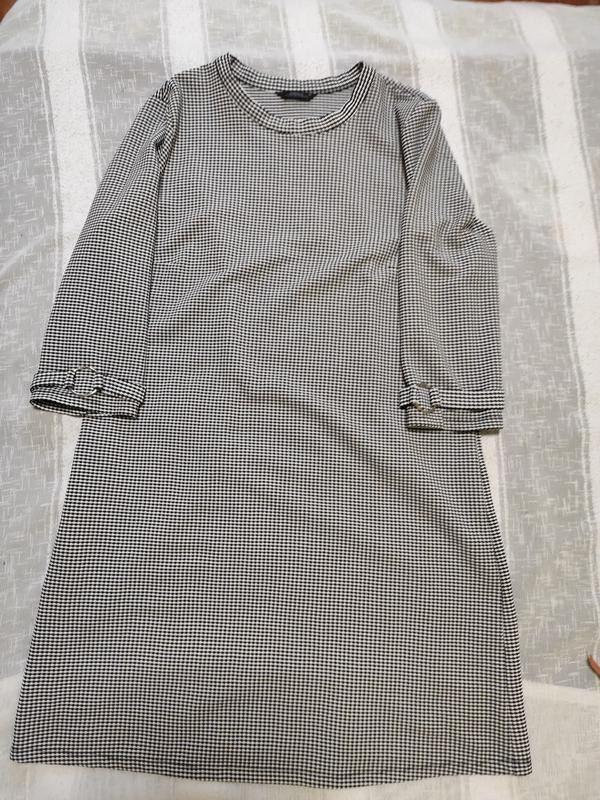 Размер UK 20/ХЛ-ХХЛ Плотная ткань, текстурированная Платье прямого кроя Рукав 3\4 Замеры: Пог: 62 см Пот: 56 см Поб: 68 см Длина рукава: 47 см Плечи: 44 см Полная длина: 97 см