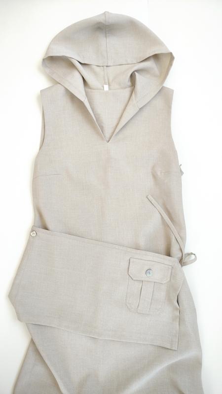 Оригинальное платье миди Размер S-M Стан идеален (без нюансов) Имеет капюшон, разрез сбоку ножки и съемную баску. Застежка сбоку. Длина от плеча - 128 см Полуобхват груди - 46 см Полуобхват талии - 44 см