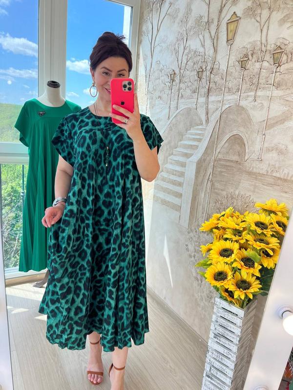 шедеврально красивое, стильное и универсальное платье свободного кроя на изящной кокетке вверху, легкой длины рукава и невероятно красивым гофре спереди и сзади, имеет шикарный вид на девушках с разными типами фигур, скрывая возможные недостатки и подчеркивая достоинства, оно завораживает с первого взгляда, гофре создает хорошее движение при каждом шаге, платье выполнено из качественного и приятного к телу коттона из эластаном невероятно красивого цвета, в нем вы будете фантастически смотреться в будни и праздники размеры 50, 52, 54, 56, 58 в зависимости от размера длина 120- 122 см, объем груди по изделию 114 см + 4 до 130 см, длина рукава от шеи 25-28 см код L8828- 3