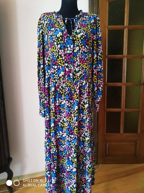 Прекрасное ярусное платье миди в цветы Marks and Spencer Ткань 100% шелковистая вискоза Размер указанный 14(48-50) Седает свободно Измерение пог 55 пот 54 поб 75 длина 125