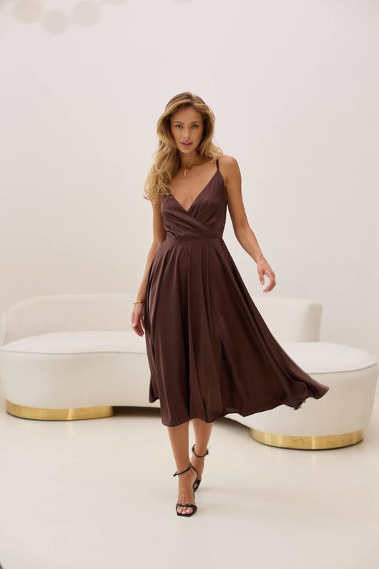 Шелковое платье на бретелях с юбкой солнце