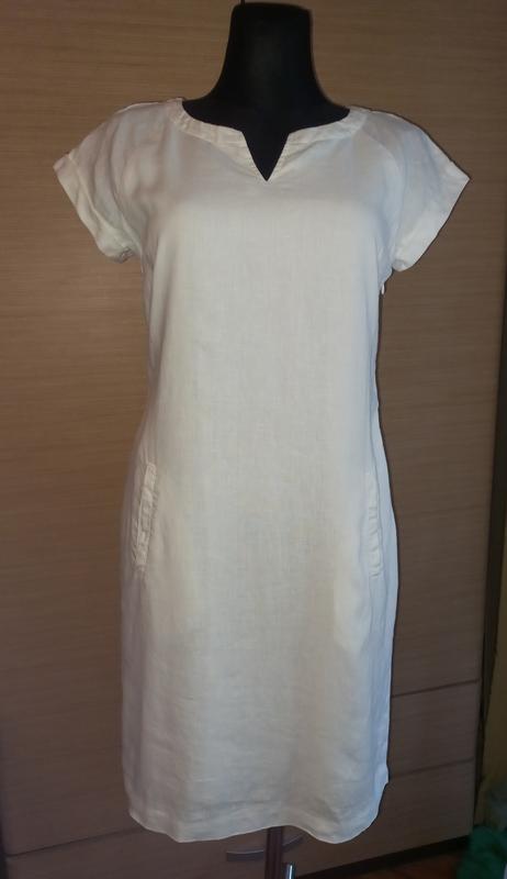 Легкое летнее платье из льна. 100% лен, полностью на тонкой хлопковой подкладке. Защипывается сбоку на молнию, есть карманы. пог 46 см, пот 42 см, поб 48 см, длина рукава от горловины 18 см, длина платья от середины плеча 96 см. Состояние идеальное, недостатков нет.