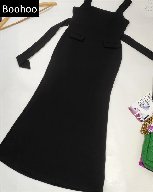 Платье женское черная миди макси на широких бретелях с завязками от бренда boohoo xs s