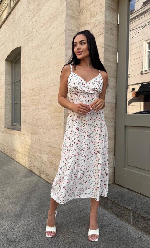 Сукня міді чорна біла платье черное белое миди цветочный принт