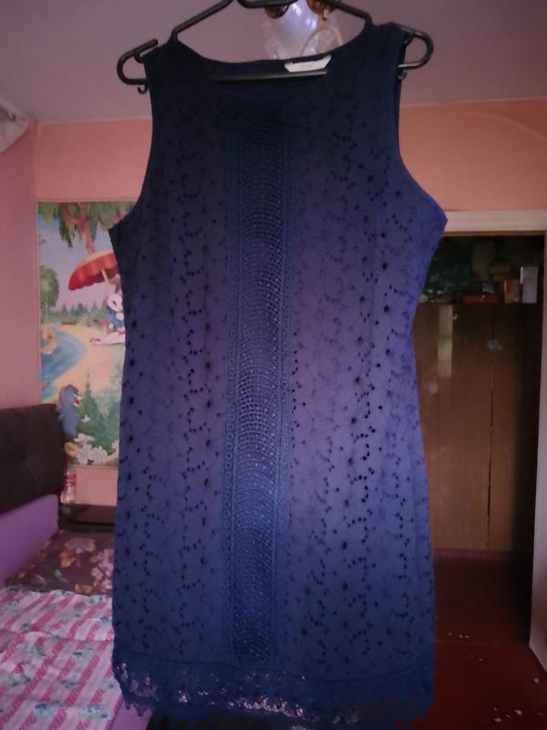 Платье темно синего цвета,54 размер.Прошва, пог 54, бедра 54, длина 90-91, 1 см.за счет зубчиков на кружке.Оплата на карту, возврат не предусмотрен.