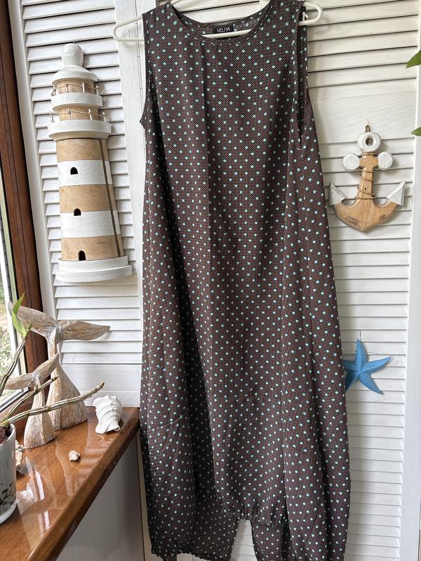 Платье свободного кроя Баллон Очень стильно смотрится Ассиметричный крой Сочетание бирюзового и темного шоколада Тренд этого лета горох Легкая немнущаяся ткань