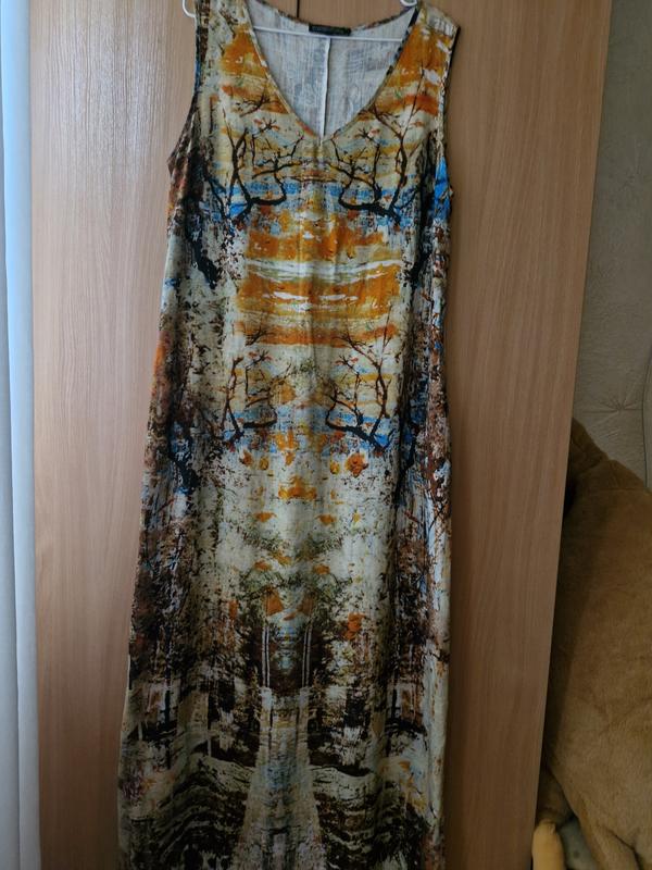 платье лен новое, размер L, длина 140 см, по груди 50-52, бедра 60-62, по бокам карманы, разрезы снизу с обеих сторон