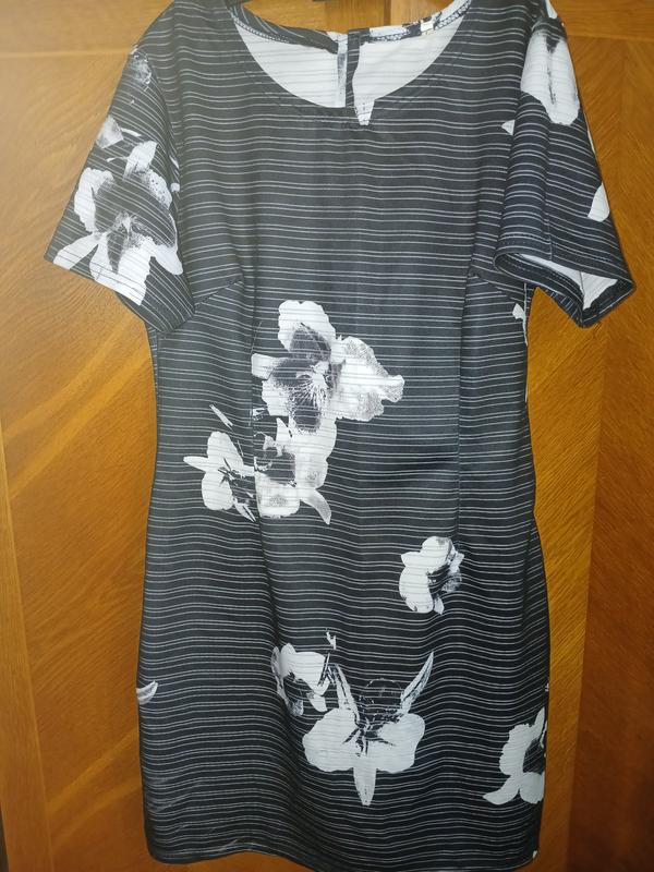 Черное летнее платье приталенного силуэта. без карманами и застежки. короткий рукав. в цветочный принт. подойдет и на праздник и в будни. все зависит от аксессуаров. сидит по фигуре идеально.ткань держит форму очень красиво. полуобхват груди 46см, талии 40см,бедра 50см. длина 83см.