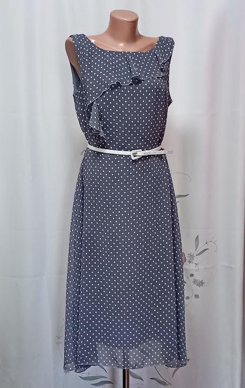 РАЗГРУЖАЮ домашний гардероб. Покупайте обдуманно - возврата, обмена, наложенного платежа нет. Перед оформлением заказа ознакомьтесь, пожалуйста, с детальной информацией в разделе обо мне. Элегантное шифоновое платье в горошек Per Una размер указан 16 может быть 12 ориентируйтесь на замеры. Состояние очень хорошее без дефектов, из нюансов есть несколько незначительных зацепок показала на 5 фото и одна нитяная петля под пояс порвалась (можно сделать новую или аккуратно отрезать обе) Платье покупала без пояса, ремешок на фото для наглядного примера Состав 100% полиэстер Платье полностью на подкладке, сбоку потайная змейка Декор: спереди волан Ширина плеч - 38 см Длина плечевого шва - 4,5 см ПОГ - 48 см ПОТ - 45 см ПОБ - 56-57 см ПО низа по прямой линии - 98 см Длина от плеча до талии спереди - 40 см Длина общая - 108 см Измерения сделаны в разложенном виде спокойном состоянии