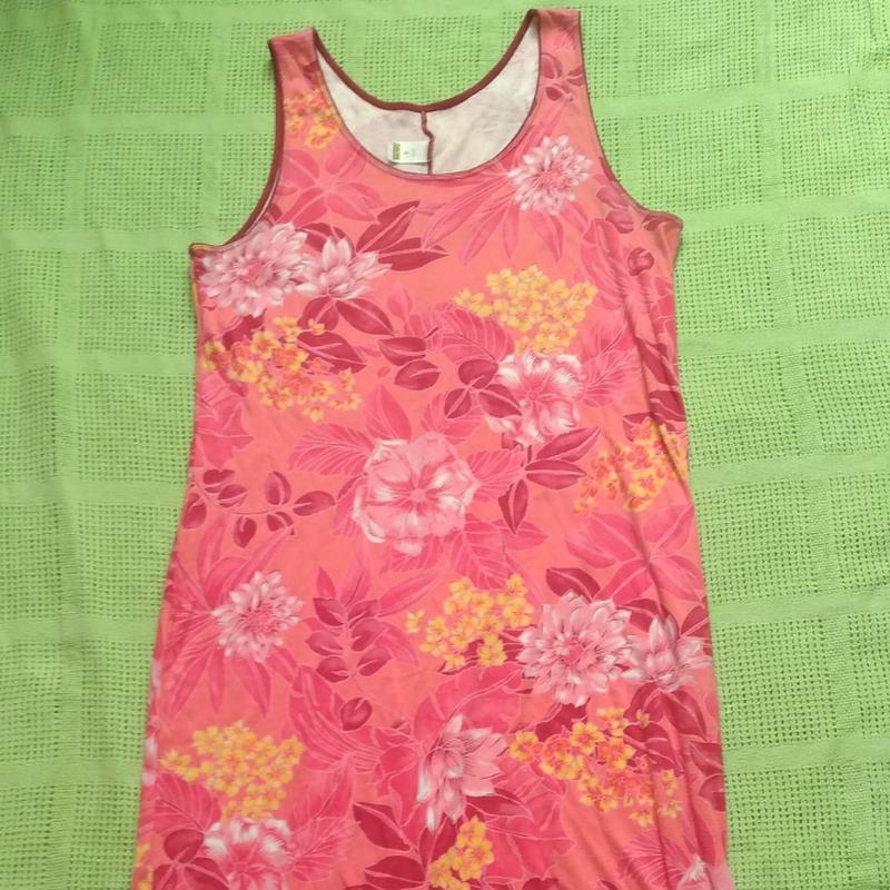 платье летнее импортное, трикотажное с левой стороны есть разрез, что удобно при ходьбе.