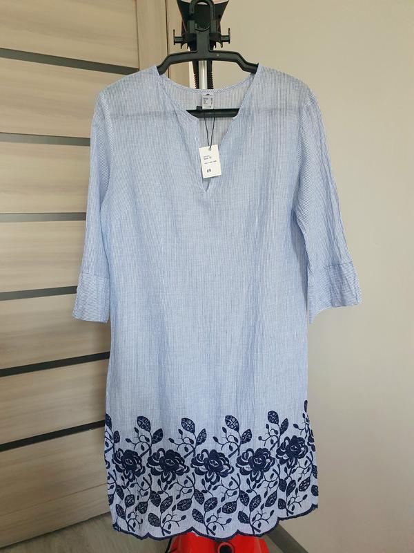 Новая с биркой, без дефектов. Бавовна 100%. Невесомая приятная ткань. Размер S-M, смотрите замеры в сантиметрах: Длина 91 Плечи 40 Полуобъем груди 45 (от проймы до проймы) Полуобъем талии 43 Полуобъем бедер 47 Длина рукава 42