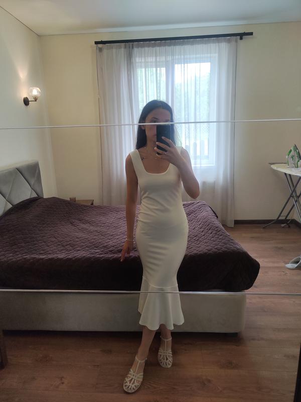 Молочное платье миди платье-рыбка