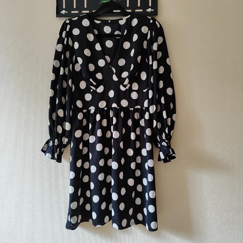 Черное платье в крупный белый горох By very.