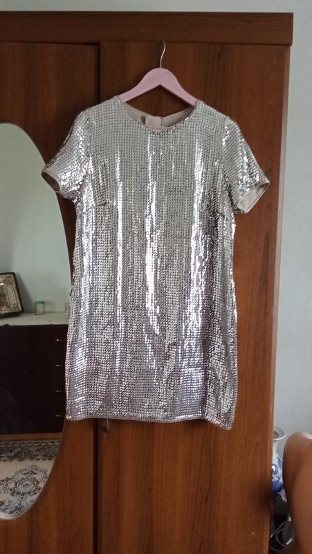 Плаття на свято, на тілесному чохлі, паєтки все на місці, без нюансів, дьог 52, піт 52, поб 56, довжина 82, на розмір М або мпленька L