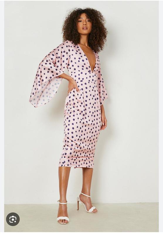 Атласна ошатна пропозиція від відомого бренда!!! Трендовий горошок, класний фасон, колір- воно гарне!!! Заміри: довжина 121, плечі 38, рукав 66/44, пог 44, декольте глибоке, пояс 37, пос 50см.
