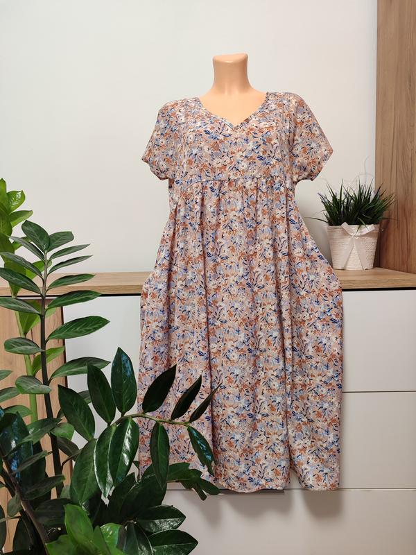 Нежные цветочные мотивы в красивых цветах, удобный фасон. Длина 106, ПОГ 48, талия и бедра свободные. крести подписываться, есть много хороших вещей и частое обновление товара!