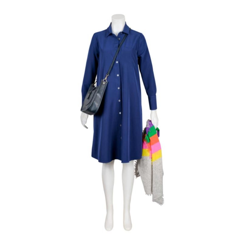 Платье-рубашка из льна для женщин от Robert Friedman темно-синего цвета. Изготовлен из высококачественной льняной ткани, этот широкий фасон впечатляет своей моделью, поражает своими легкими и охлаждающими свойствами. Переливающиеся пуговицы, стильные акценты и создают вневременного современного летнего компаньона.