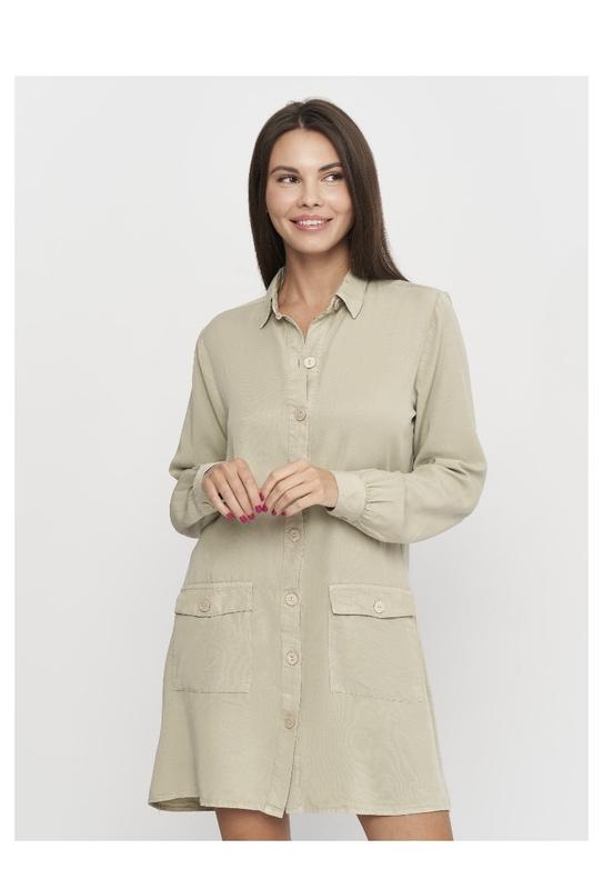 Жіноча сукня-трапеція stradivarius хакі ліоцелл на гудзиках, довгий рукав, нова, розмір s/...