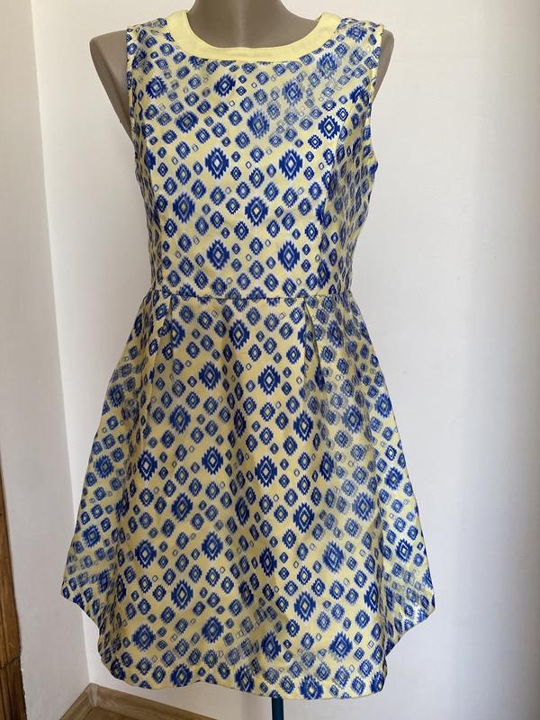 Сукня-скейтер azaka paris, блідо-жовта з блакитним візерунком, розмір m/l