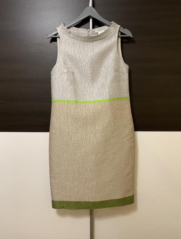Неймовірна сукня дорого, відомого бренду в ідеальному стані. Чудова і якісна. І в тканині і в підкладці присутній шовк. Гарно тримає форму, тканина рельєфна, красиві кольори. Чудовий, сучасний крій, красива горловина, позаду довга блискавка. Під пахвами-44,5, пройма-24, пот-44, поб-50, довжина-96. Питайте…