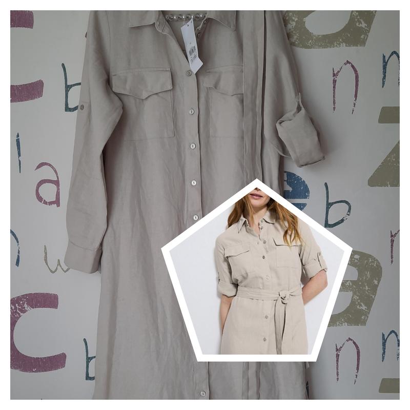 Новое льняное платье-рубашка миди с карманами лен/вискоза Размер указан 12 длина 123 см.Плечи 38см.Рукав 59см.ПОГ 53/55см.ПОБ 54см
