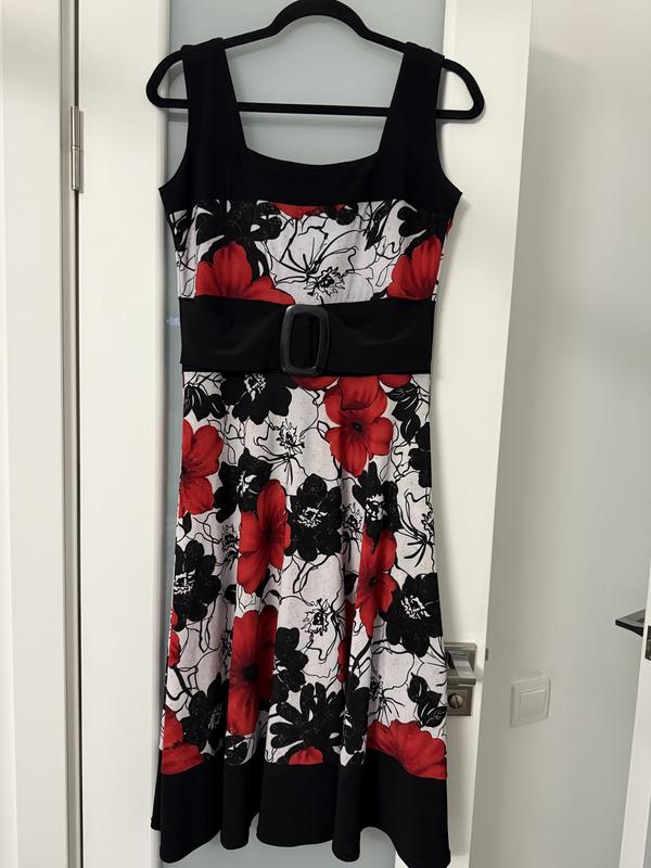 Розмір орієнтовно 48 Заміри: ПОГ 47 ПОТ 42 Бедра вільно Тканина дуже добре тягнеться Довжина 115