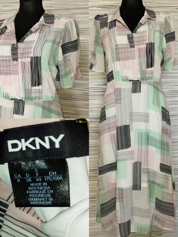 Платье-рубашка миди интересный абстрактный принт-ненавязчивый интересный от DKNY (Donna Karan New York) — дом моды в Нью-Йорке.DKNY отражает дух Нью-Йорка, его контрасты, сочетая строгость и расслабленность, сдержанность и смелость. DKNY славится своими лаконичными формами, монохромными цветами, минимальным декором и практичностью. размер M S длина 115 см ПОПлечи 40 см ПОГ 48-50 см ПОТ 40 см ПОБ 60 см пуговицы только до пояса подол - трапеция подкладка по всей длине 100% полиэстер - легкий шифон.устройствующий подкладка-мягкая,эластичная ИДЕАЛЬНОГО СТАНУ-швы и полотно цельные, без нюансов без торгу