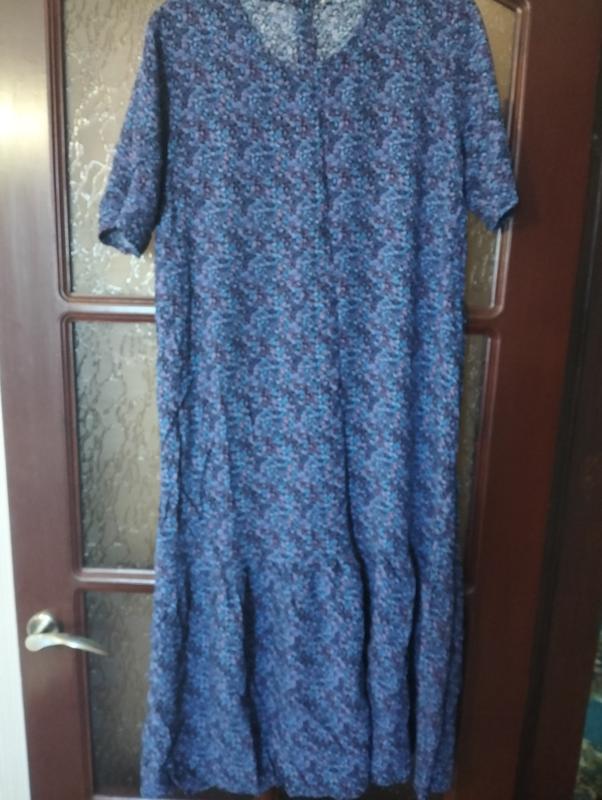 Платье в мелкие цветочки, из штапеля, пог 52, пот 56, поб 59. Длина 110. Легкое, приятное.