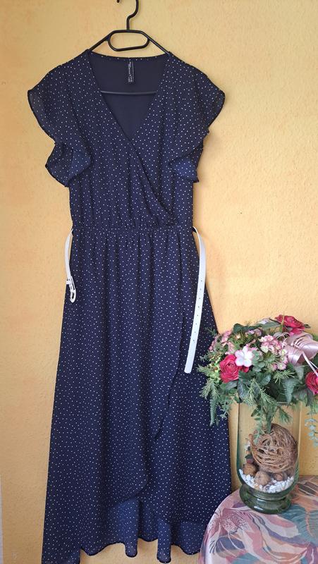 Платье потрясающее, с запахом, легкое, в классический горошек. Купила себе в Германии, одела один раз, поправилась. Смотрится очень нарядно, смотрите фото, старалась все показать, извените немного отсвечивает. В поясе резиночка, можно носить без пояса.Сбоку потайная змейка. Длина 133 см Высота до пояса 45,5 см ПЛЕЧИ 35 см ПОГ 45 см ПОТ от 33 см до 45 см ПОБ 56 см по подъюбнику СМОТРИТЕ МОИ ДРУГИЕ ОБЪЯВЛЕНИЯ ОТПРАВКА УКР ИЛИ НОВОЙ ПОЧТОЙ ОПЛАТА НА КАРТУ ПРИВАТБАНКА