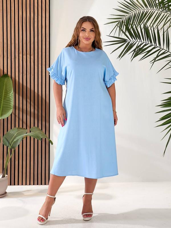 Женское льняное платье миди свободного кроя с рюшами на рукавах, летнее платье больших раз...