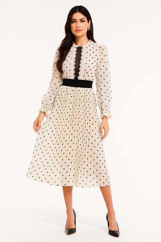 Шифонова жіноча сукня в горошок з юбкою пліссе З прозорою чорною вставкою з мереживом та поясом-резинкою Розмір сукні S-M В комплекті подовжена майка-підкладка