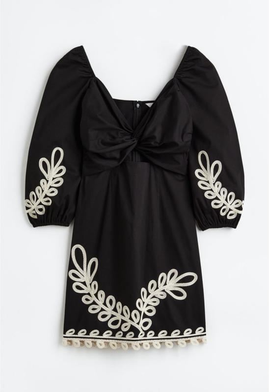 Черное платье с вышивкой от H&M, размер М, будет и на С, ткань тянется. 97% бавовна, 3% еластан Длина 90 см, длина юбки 50 см, длина рукава 55 см, полуобъем груди 50 см, полуобъем талии 39 см, полуобъем бедер 50 см Изысканная праздничная эффектная яркая и неповторимая, эффект вау!