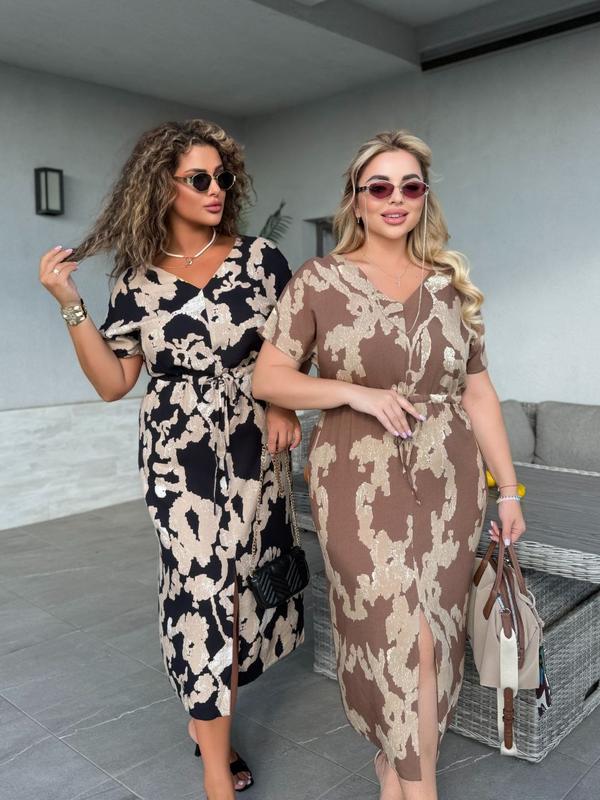 Модель сукня Арт.881 ◾️Розміри: 50;52;54;56;58;60 ◾️Ткань:плотный штапель Принт «мрамор» производства Турции ◾️Цвет:черный. ◾️Цена:950 грн. Современный тренд,приемная ткань на ощупь, прямой крой украшает разрез по переду, талии кулиска. Виміри на арт.881 📌 50 р-р: ОГ-102 см. ОТ- 100 см. ОС-116 см. Рукав от горловины -29 см. Длина изделия -125 см. 52 р-р: ОГ- 106 см. ОТ-104 см. ОС-120 см. Рукав от горловины -29 см. Длина изделия -125 см. 54 р-р: ОГ-110 см. ОТ- 108 см. ОС- 124 см. Рукав от горловины -30 см. Длина изделия -126 см. 56 р-р: ОГ- 114 см. ОТ- 112 см. ОС- 128 см. Рукав от горловины 30 см. Длина 127 см. 58 р-р: ОГ- 118 см. ОТ- 114 см. ОС- 132 см. Рукав от горловины 31 см. Длина изделия 128 см. 60 р-р: ОГ- 122 см. ОТ- 118 см. ОС-136 см. Рукава от горловины 31 см. Длина изделия 128 см. юбе