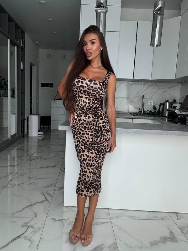 Жіноча сукня плаття літнє міді в леопардовий принт лео змії зміїний по фігурі