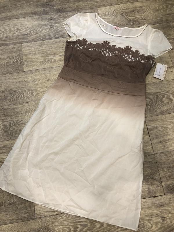 Сукня польського бренду.З легкого батисту з мереживом.На підкладці.Потайна блискавка.Колір молочний з переходом.Розмір на 48-50,або М-Л.Потрібні розміри -пишіть.