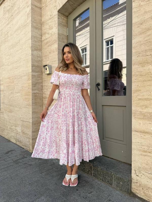 Мод 352 Тканина: штапель Розміри: 42–44, 46–48, 50–52 Сезон: весна/літо Розмірна сітка: Розмір 42–44 • Груди: 80–90 см • Талія: 60–70 см • Довжина рукава: 19 см • Загальна довжина: 120 см Розмір 46–48 • Груди: 86–96 см • Талія: 66–76 см • Довжина рукава: 20 см • Загальна довжина: 121 см Розмір 50–52 • Груди: 94–104 см • Талія: 72–82 см • Довжина рукава: 21 см • Загальна довжина: 122 см Літня максі сукня з відкритими плечима, пишними рукавами-буфами та еластичним ліфом. Легка, повітряна, ідеальна для відпустки та літніх прогулянок.