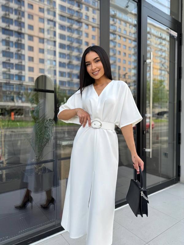 Елегантна сукня з поясом довжини міді