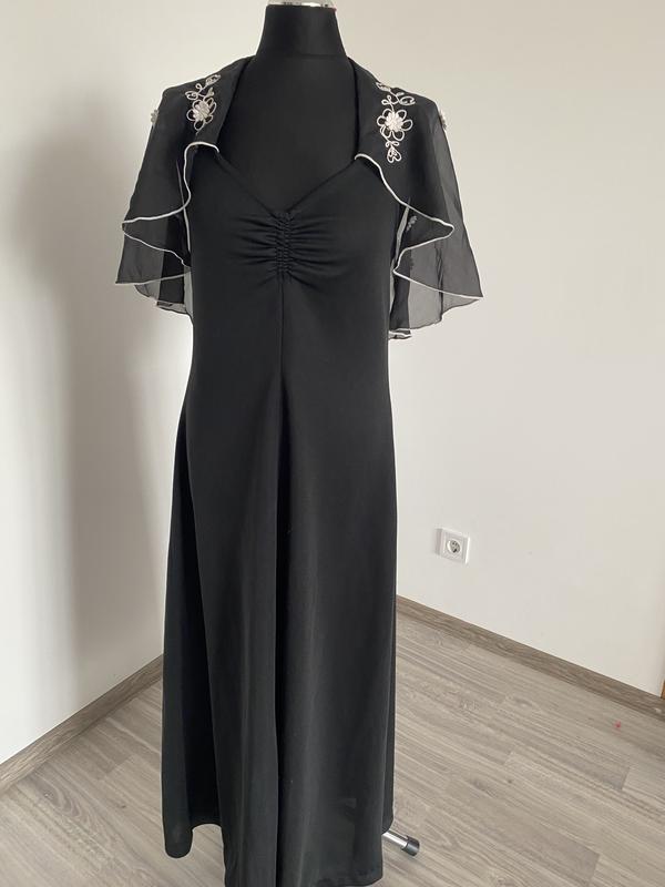Симпатична чорна сукня з вишивкою. Модель дуже гарно підкреслює фігуру, пелерина з вишивкою доповнює образ.