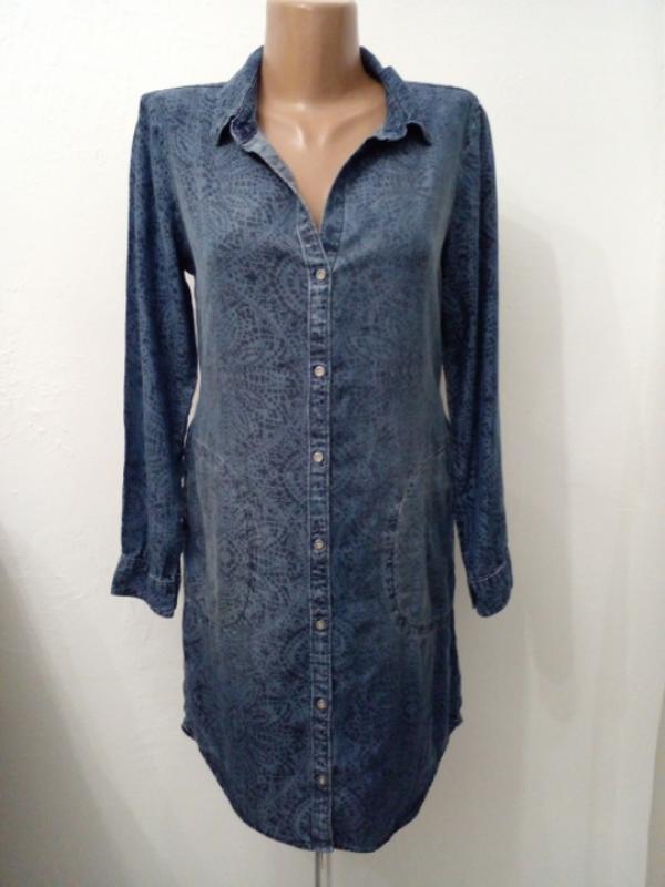 В идеальном состоянии, ткань лиоцелл. Размер указан С, но пойдет и на М. Размер больше соответствует М, наверное американский.Без торга. плечі-40-41 пог-48-50 пот-43( завязывается сзади) поб-50 рукав-60 длина-93-95( спина)