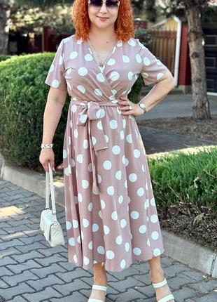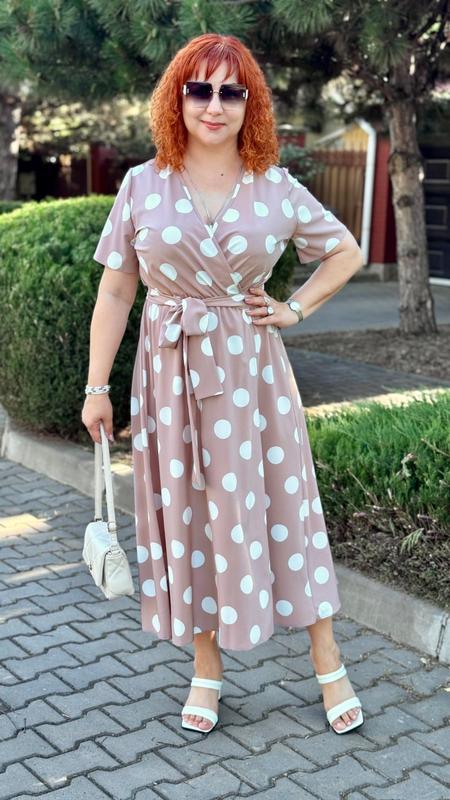 Сукня Код 3756 Тканина: софт. Цвета: голубой, розовый, бежевый, горох-мокко, горох-хаки. Размеры: 52-54, 56-58, 60-62. Длина платья: 124, 125, 126 см. Длина рукава: 21, 22, 23 см. Обхват рукава: 39, 41, 43 см. Замеры готового изделия: 52-54 ОГ 110 ОТ 80/112 ОС 160 56-58 ОГ 117 ОТ 87/120 ОБ 167 60-62 ОГ 124 ОТ 94/128 ОС 174 На модели показан этот размер 52-54❗️ Рост модели 170 см. Oбьемы модели ОГ 108 ОТ 84 ОБ 108 см. Невероятно женственное длинное платье в вечернем стиле из софта (растяжимости нет). Лиф платья и юбка на запах, по талии собрана на резинку. Пояс из основной ткани в комплекте. Карман, застежек нет.
