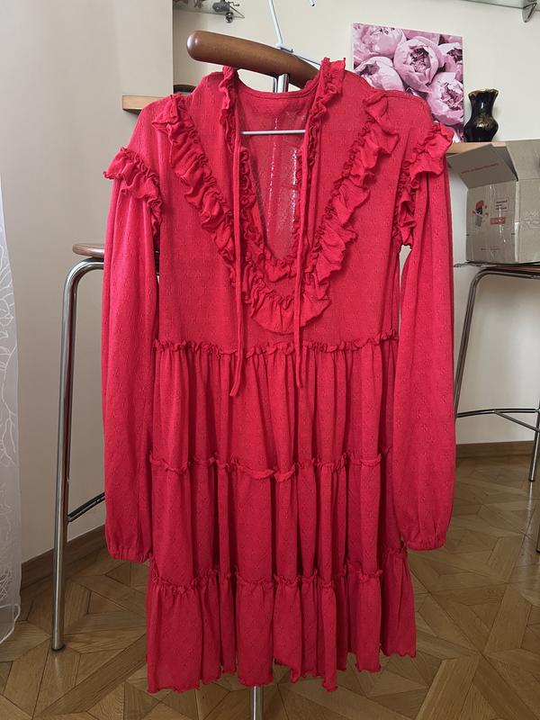 Червона сукня від бренду Weannabe. Склад: 65% бавовна, 35% поліестер. Сукня легка, приємна до тіла. Стан дуже хороший. Взагалі цей бренд суконь чудової якості, маю від них ще кілька подібних) Більше фото можу надіслати в особисті повідомлення. По розмірам точно підійде на S,M і можливо навіть L. Взагалі розмір у неї one size. На фото одна і та сама сукня на різних дівчатах. На літню відпустку буде прям вау. Пишіть😉