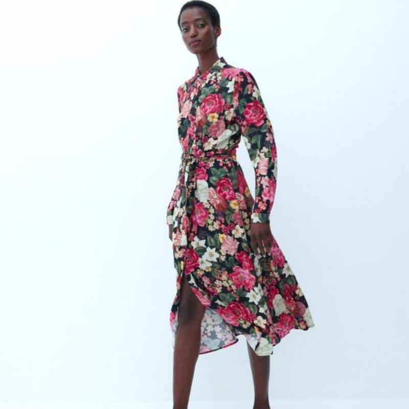 Платье на пуговицах, без ремень, садится по фигуре, имеет нюанс зацепку вдоль застежки, но через принт не заметно