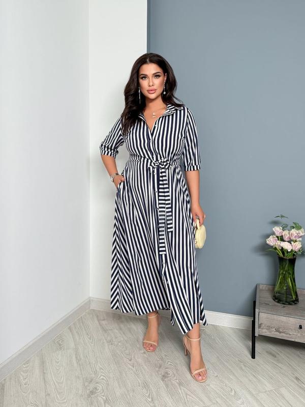 💞Модель 039💞 Жіноча стильна сукня,максі довжини,має комір, застібається на кнопки .Рукави середньої довжини,а поділ сукні злегка розкльошений Тканина :софт. Розмірний ряд: 1️⃣48-50; 2️⃣52-54; 3️⃣56-58; 4️⃣60-62, 💵Ціна 1000 грн💵 🌀48-50 Об'єм грудей 119см Об'єм талії 102см Об'єм стегон 142см Довжина ліфа від плеча 47см Довжина спідниці 103см Довжина сукні 150см Ширина плечей 41см Довжина рукава 33см Об'єм біцепса 44см Обхват манжета 35см 🌀52-54 Об'єм грудей 127см Об'єм талії 110см Об'єм стегон 149см Довжина ліфа від плеча 49см Довжина спідниці 103см Довжина сукні 152см Ширина плечей 43см Довжина рукава 34см Об'єм біцепса 47 см Обхват манжета 37см 🌀56-58 Об'єм грудей 135 см Об'єм талії 118 см Об'єм стегон 158см Довжина ліфа від плеча 51 см Довжина спідниці 103см Довжина сукні 154см Ширина плечей 45см Довжина рукава 35 см Об'єм біцепса 49 см Обхват манжета 39см 🌀60-62 Об'єм грудей 143см Об'єм талії 126см Об'єм стегон 166см Довжина ліфа від плеча 53см Довжина спідниці 103см Довжина сукні 156см Ширина плечей 47 см Довжина рукава 36 см Об'єм біцепса 52см Обхват манжета 41см.N.K