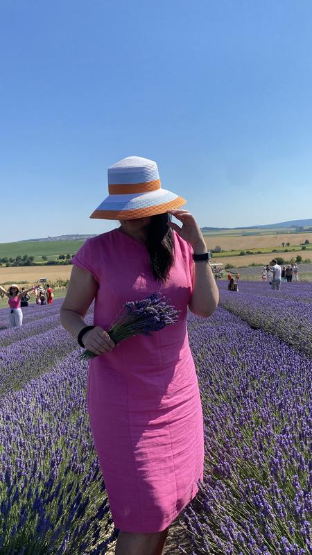 Лляна сукня Quioaquie. Яскрава, літня в прекрасному стані Подорожувала лавандовими полями Моравии. Розповість вам 😉 Вдягнена два рази На М-Л. Довжина 98 см ПОГ 52 ПОГ 46 ПОБ 57 Класичний крой, застібка-змійка по спинці 50 см