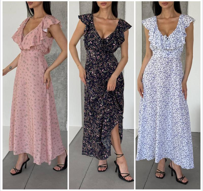 Сукня ⚜️тканина: штапель ( натуральна тканина) ⚜️розмір.універсал ⚜️колір.пудра,,синій ,білий (принт квітка 🌺) виміри груди 89-100 талія 60-80 довжина 127