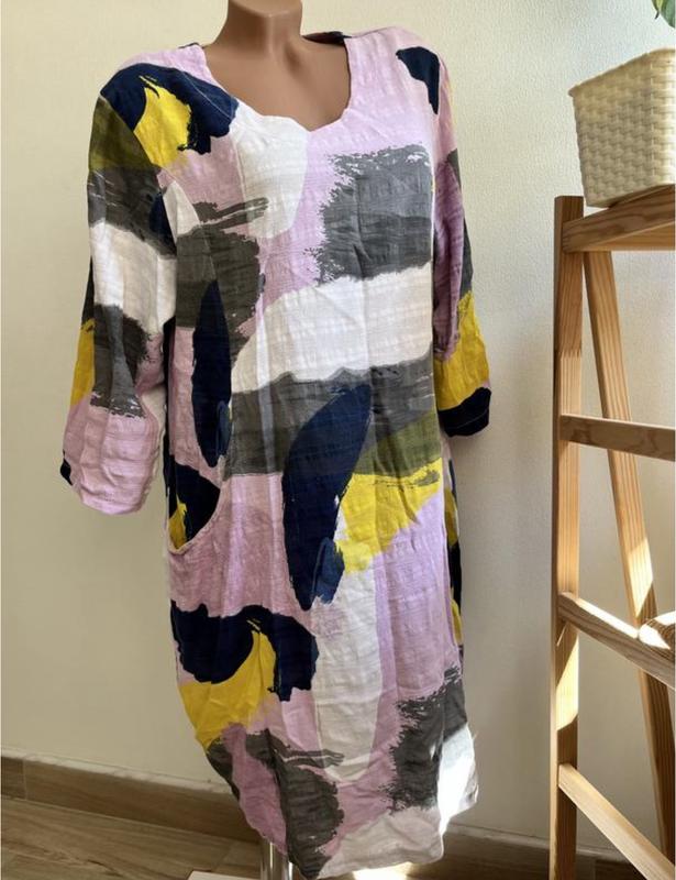 💛Дуже стильна, якісна , гарна сукня на розмір XL-2XL. 🩷Стан гарний, тканина комфортна на літо, сток-якісь чудова! Рукавчик має ремені, регулюється . 💜Є кишені по боках 🩶Не парить , на спекотну погоду супер 💛Довжина від плеча 96-96,5 🤍Плечі 44-44,5 💜Під руками 54,5-55